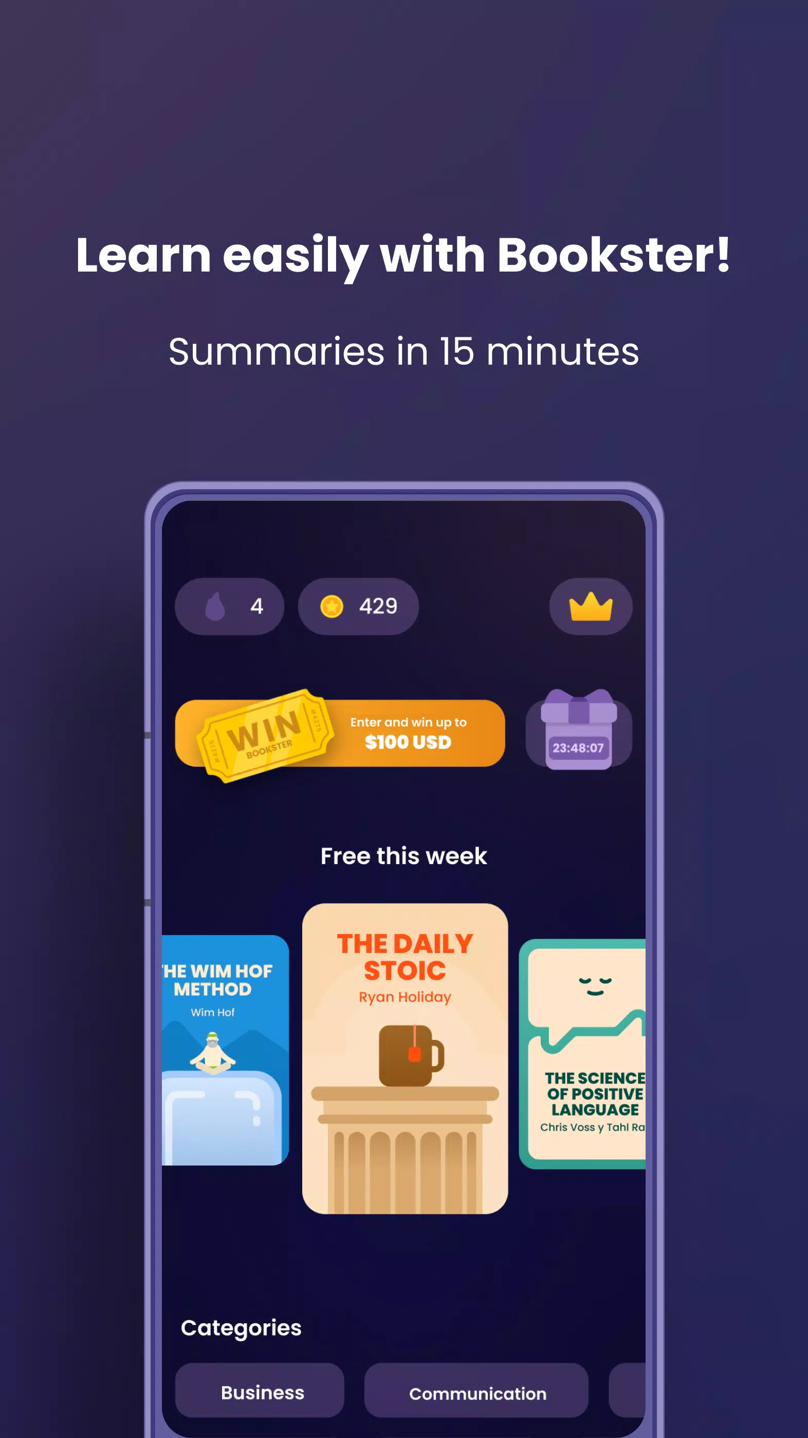 Unlock your potential with Bookster, where the best books and podcasts are condensed into just 15-minute segments, crafted to enhance your habits and personal well-being.